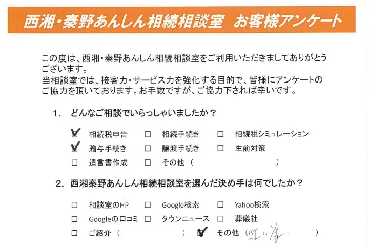 2.西湘秦野あんしん相続相談室を選んだ決め手は何でしたか?