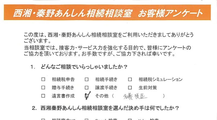 2.西湘秦野あんしん相続相談室を選んだ決め手は何でしたか?